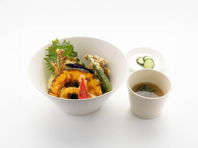 - Udon (Japanese Wheat Noodles), Tempura, Sake