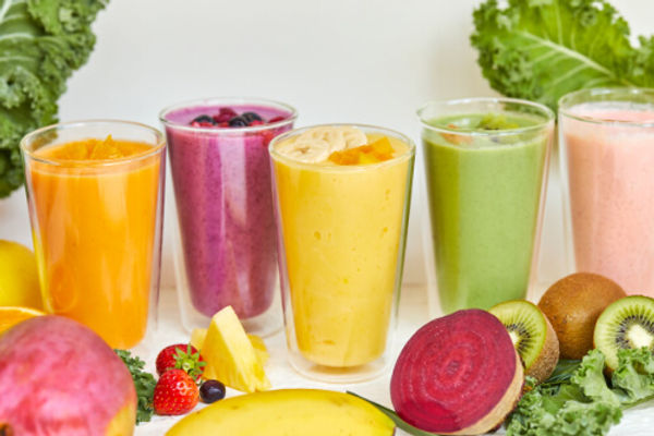 The menu includes colorful open sandwiches, smoothies with plenty of vegetables and fruits, and deli salad plates.