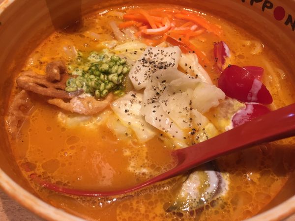 野菜のポタージュのような濃厚なおいしさのスープにお野菜もたっぷりたべられる女子には嬉しい新しいラーメン。麺もグルテンフリーの玄米麺も選べたり、スムージーやビーガンソフトクリームも食べれる嬉しいお店です。