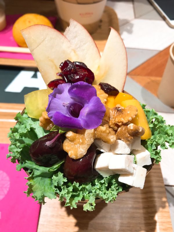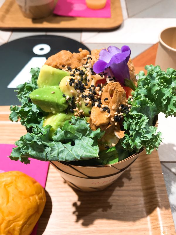 ハワイで有名なサラダ専門店の海外初出店だそうです。サラダはブーケみたいに盛り付けられていて可愛い!インスタ映えします。カップは広がるように出来ていて、お箸も付いてくるのですごく食べやすい。ソイミートやソイチーズなど、珍しいトッピングがたくさんありました。スモールで700円、レギュラーで1200円くらい。パンやパスタ、雑穀も一緒に付いてきます。