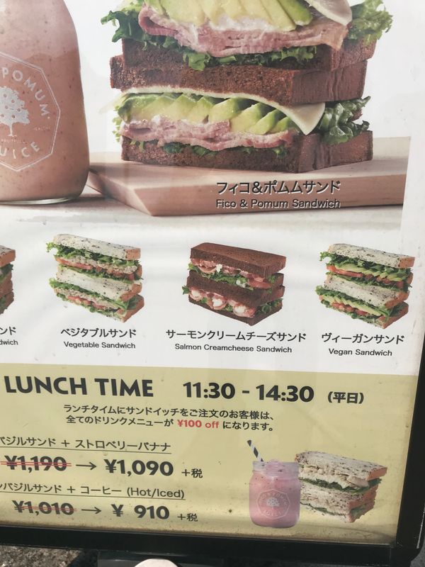 青山の国連大学のすぐ近くにあるジュースカフェです。チーズやマヨネーズを使ったベジタブルサンドと、動物性のものを一切使っていないヴィーガンサンドがありました。ケールのスムージーと一緒にヴィーガンサンドをオーダー。中身はアボカドとトマトとグリーンリーフとナッツ。多めに入ってるマスタードが良いアクセントになって、結構ガッツリ感あります!