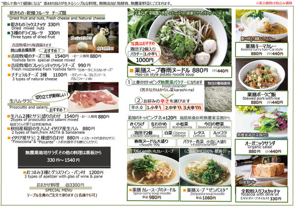 ランチは薬膳スープ春雨の店、ディナーはワインバー&オーガニックレストラン