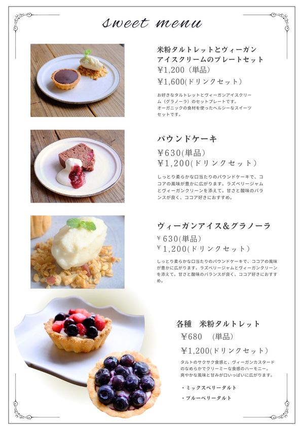 ヴィーガン&グルテンフリースイーツを提供しています。