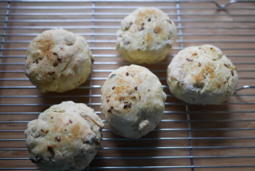 今回はスープにぴったりのスコーンもご紹介します。節分豆とドライトマトやハーブが入った甘くないスコーンです。