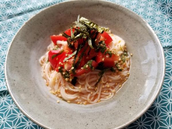 今回は、常備菜となる<トマトの梅味噌和え>と、それを使った簡単素麺、夏野菜の炒め物のレシピを紹介します。